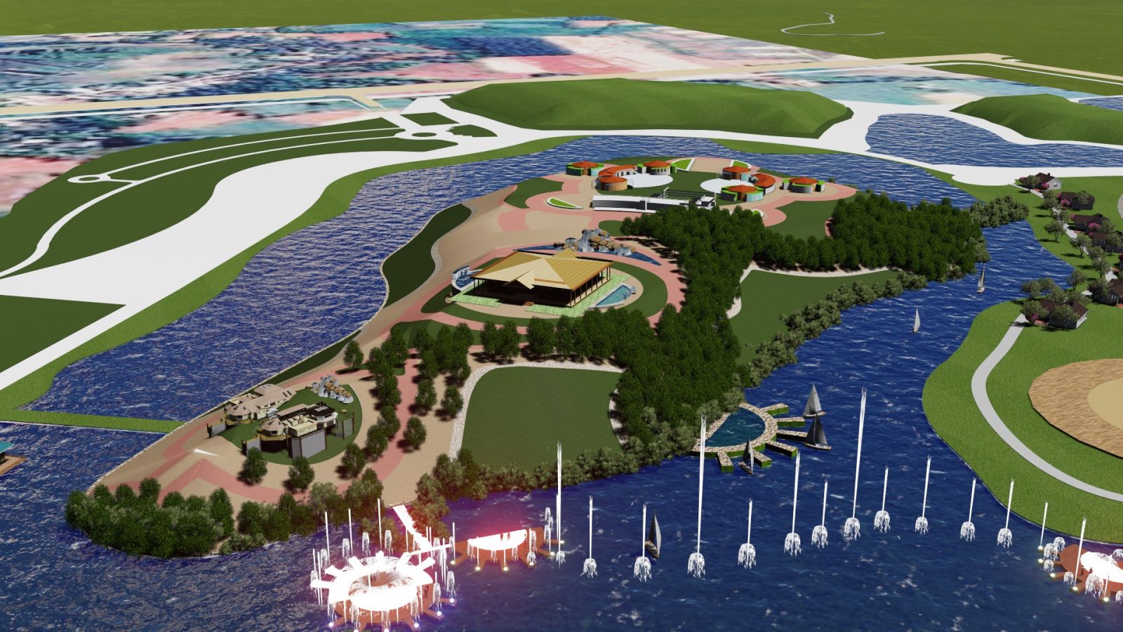 Khu đảo Ngọc-vui chơi giải trí là khu vực biệt lập với các khu chức năng khác. Ở đây sẽ hình thành theo tính chất trải nghiệm thiên nhiên với các chủ đề khác nhau, khu thương mại, mua sắm cao cấp, khu vui chơi giải trí (nhạc nước, Night club), khu dịch vụ chăm sóc sức khỏe…