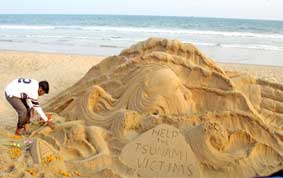 Nghệ sĩ điêu khắc trên cát nổi tiếng thế giới người Ấn Độ Sudarsan Pattnaik đã làm một tác phẩm điêu khắc trên bờ biển ở thị trấn Puri tưởng niệm hàng ngàn người đã thiệt mạng. Sử dụng 8 tấn cát và trong khoảng 4 tiếng, Pattnaik đã tạo hình ảnh những con sóng biển với một gương mặt nổi mang thông điệp: “Hãy cứu giúp các nạn nhân sóng thần”. Du khách nội địa, nước ngoài và người dân đến đấy đặt hoa quanh tác phẩm điêu khắc để tưởng nhớ các nạn nhân.
