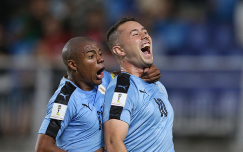 Các cầu thủ U20 Uruguay ăn mừng bàn mở tỉ số (Ảnh: FIFA).