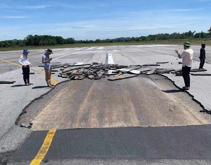 | Đường lăn máy bay tại sân bay Vinh bị nứt vỡ hồi đầu tháng 7/2023. (Ảnh: Cục Hàng không Việt Nam) |