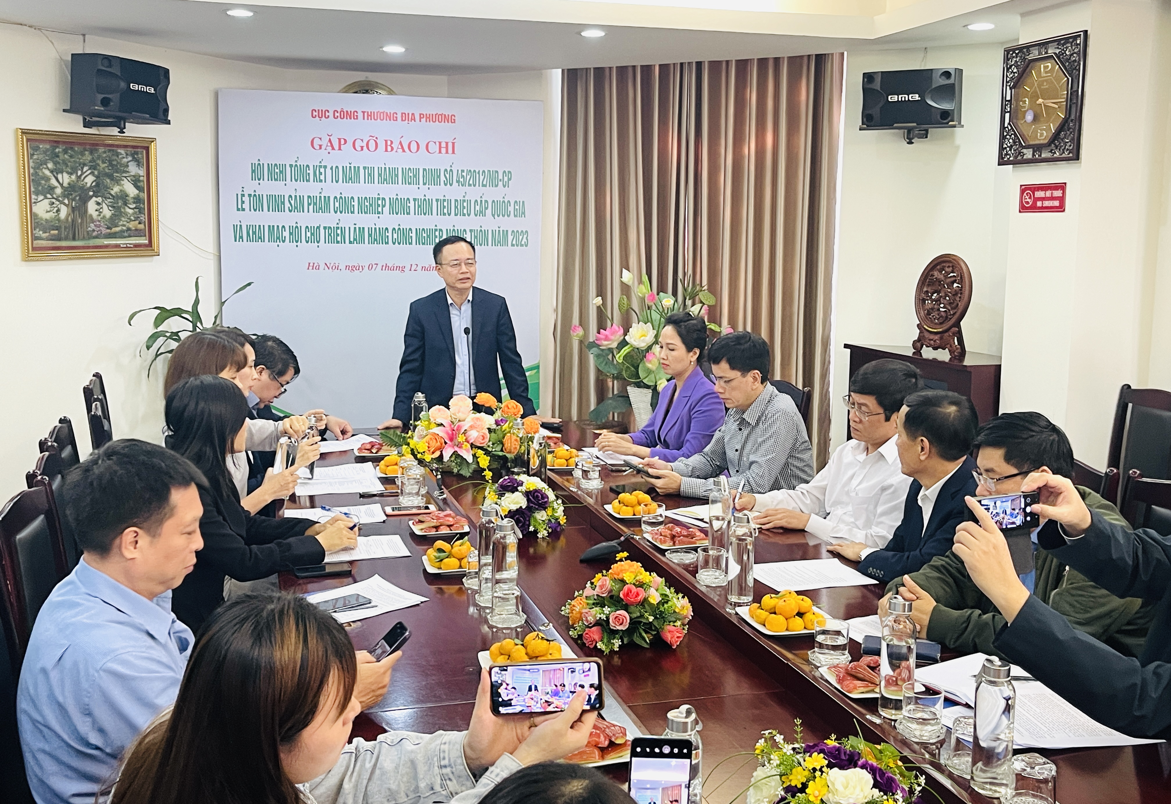 Thông tin tại buổi gặp gỡ báo chí, ông Ngô Quang Trung - Cục trưởng Cục Công Thương địa phương, Bộ Công Thương - đơn vị đầu mối tổ chức sự kiện cho biết: Từ ngày 14 - 19/12, Bộ Công Thương tổ chức chuỗi sự kiện gồm: Hội nghị tổng kết 10 năm thi hành Nghị định số 45/2012/NĐ-CP về khuyến công (Nghị định số 45); Lễ Tôn vinh, trao Giấy chứng nhận các sản phẩm công nghiệp nông thôn (CNNT) tiêu biểu cấp quốc gia và Khai mạc Hội chợ triển lãm hàng CNNT tiêu biểu năm 2023.