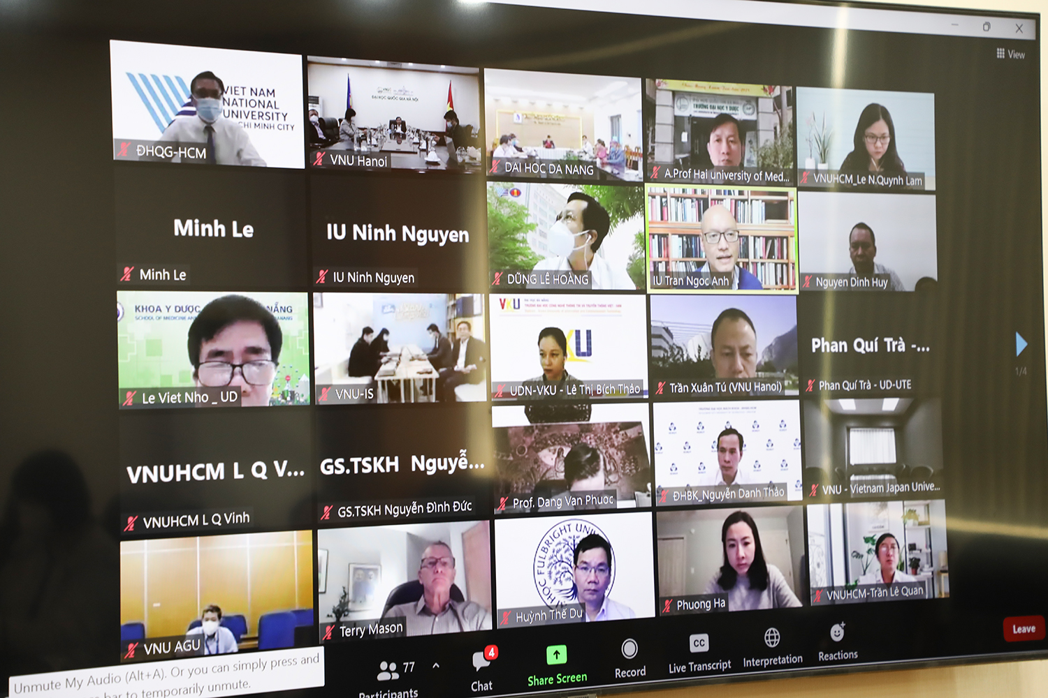 | Các đại biểu từ 3 ĐH của Việt Nam tham gia trực tuyến khởi động Dự án PHER vào tháng 11/2021. |
