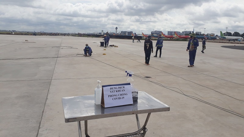 | Thi công sửa chữa đường lăn tại sân bay Tân Sơn Nhất. |