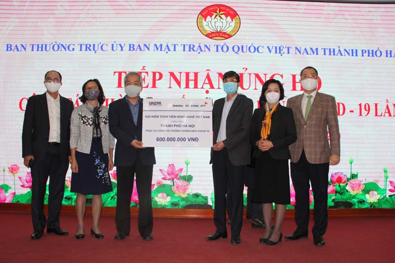 | MTTQ Việt Nam TP Hà Nội tiếp nhận ủng hộ từ Hội Kiểm toán viên hành nghề Việt Nam. |