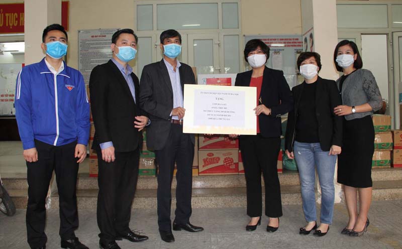| Danh sách các tổ chức, cá nhân, doanh nghiệp ủng hộ phòng, chống dịch COVID-19 lần thứ 5: 1. Câu lạc bộ UNESCO doanh nhân Sen Hồng 20 thùng găng tay (trị giá 18.000.000đ) 2. Công ty Cổ phần Ao Vua 200.000.000 đồng 3. Công ty TNHH Xuất Nhập khẩu Café Minh Tiến 20 thùng Cà phê 4. Tập đoàn Tân Á Đại Thành 300 máy lọc nước (trị giá 1,5 tỷ đồng) 5. Công ty Cổ phần Tập đoàn Lộc Trời 10 tấn gạo 6. Hội Thành Tin Lành Lời sự sống 500 bộ đồ bảo hộ 7. Trường Tiểu học Lê Văn Tám 20.000.000đ 8.Công ty Cổ phần dụng cụ cơ khí xuất khẩu 60.000.000đ 9.Hội Tư vấn Thuế Việt Nam 400.000.000đ 10. Hội Kiểm toán viên hành nghề Việt Nam 600.000.000đ |