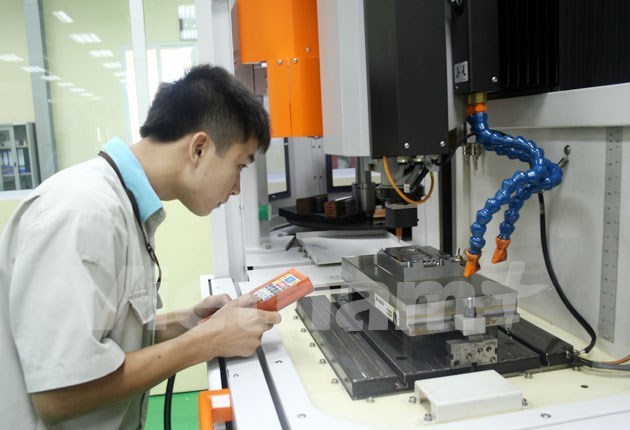 Dây chuyền sản xuất linh kiện điện tử tại Khu công nghiệp Điềm Thụy. (Ảnh: TTXVN)