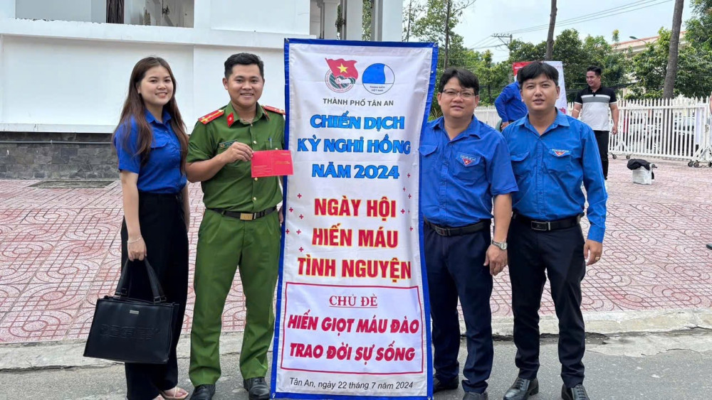 Phó Bí thư Thành Đoàn Tân An - Nguyễn Tây Giang tham gia và vận động đoàn viên, thanh niên hiến máu tình nguyện