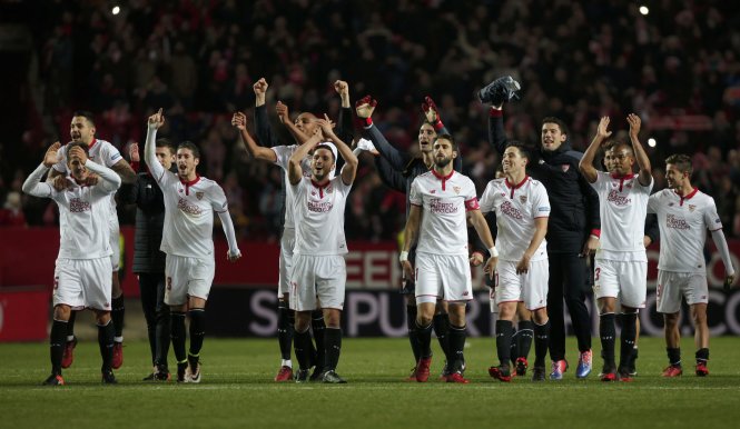 Các cầu thủ Sevilla ăn mừng chiến thắng trước R.M. Ảnh: Reuters