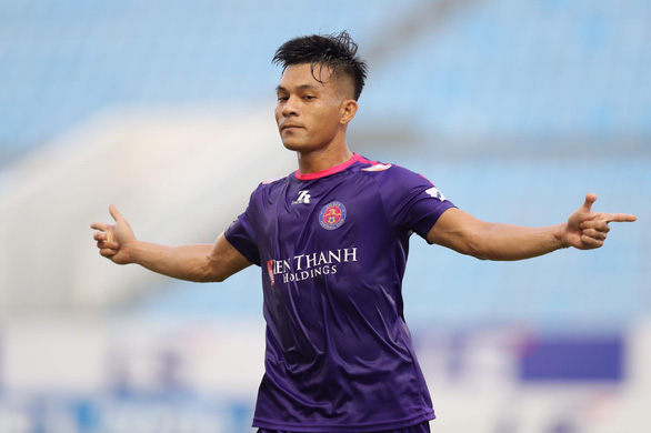 Tấn Tài ăn mừng bàn thắng vào lưới SHB Đà Nẵng - Ảnh: THẮNG LÊ