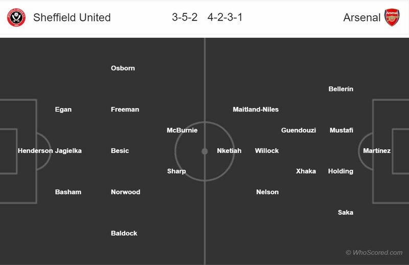 Đội hình dự kiến của Sheffield và Arsenal. (Ảnh: Whoscored)