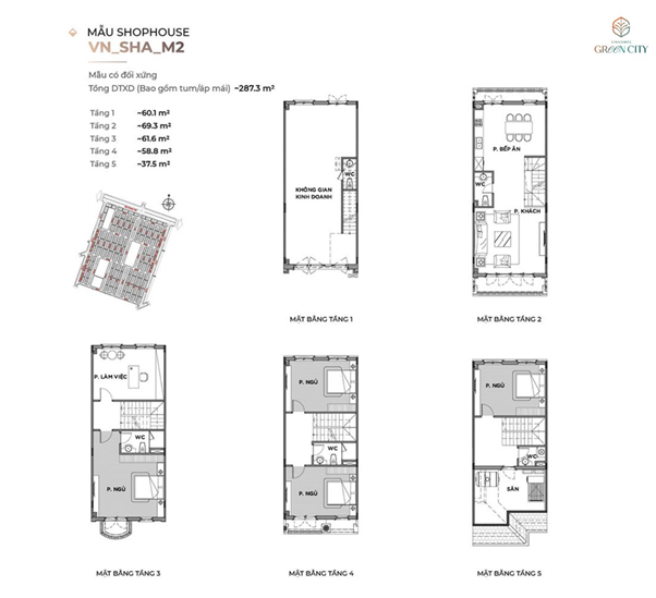 Mỗi căn shophouse Vin Green City được thiết kế từ 4–5 tầng, với tầng trệt chuyên biệt cho kinh doanh và tầng trên dễ dàng cải tạo thành không gian sinh hoạt, căn hộ mini hoặc cho thuê dài hạn.