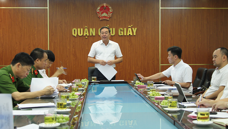 Nhắc lại tình hình cháy, nổ, sự cố, tai nạn diễn biến phức tạp, khó lường, nhất là các vụ cháy tại các cơ sở kinh doanh karaoke trên địa bàn Cầu Giấy thời gian qua, Phó Chủ tịch Thường trực UBND TP đề nghị quận Cầu Giấy cần siết chặt kỷ luật, kỷ cương, thắt chặt các quy định trong phòng cháy, chữa cháy; nâng cao vai trò trách nhiệm trong lãnh đạo, chỉ đạo của các cấp ủy Đảng, chính quyền, các ngành chức năng, đặc biệt là chủ tịch UBND các phường trong việc rà soát, xử lý, tái kiểm tra các cơ sở vi phạm về PCCC, quán karaoke trên địa bàn.