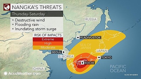 Theo dự báo, siêu bão Nangka có thể gây ra lụt lội, lở đất và sóng cao ở vùng biển phía Nam Nhật Bản.