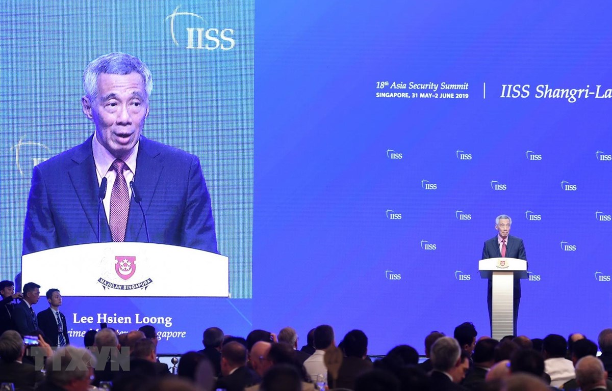 Thủ tướng Singapore Lý Hiển Long phát biểu tại Đối thoại Shangri-La lần thứ 18 ở Singapore ngày 31/5 vừa qua. (Ảnh: AFP/TTXVN)