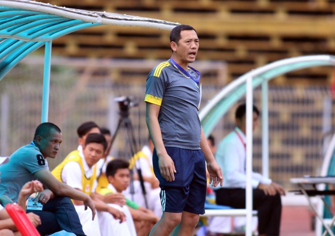 Trợ lý Nguyễn Đức Thắng (đứng) sẽ thay HLV Ngô Quang Trường (ngồi) ở V-League 2017. Ảnh: N.K