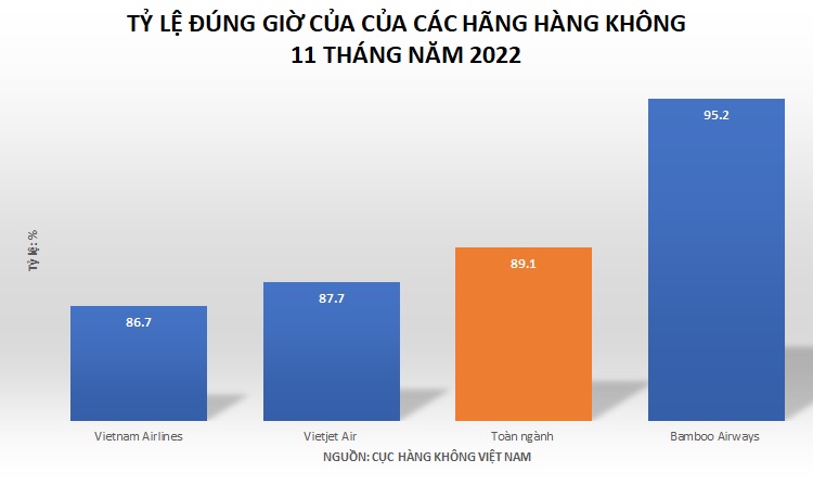 | Tỷ lệ bay đúng giờ của các hãng hàng không 11 tháng năm 2022 |
