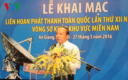 Chiều ngày (26/3), tại thành phố Long Xuyên, tỉnh An Giang, Đài TNVN phối hợp với Đài PT-TH An Giang khai mạc Liên hoan phát thanh toàn quốc lần thứ XII năm 2016, vòng sơ khảo khu vực miền Nam. Ông Trần Minh Hùng, Phó Tổng Giám đốc Đài TNVN dự và phát biểu khai mạc.