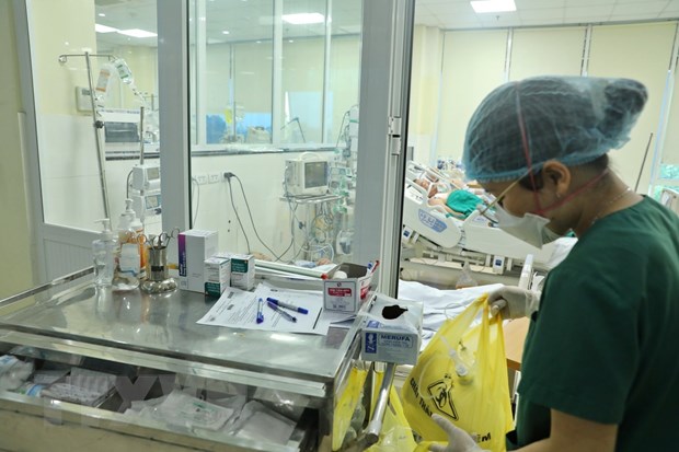 Điều trị cho bệnh nhân COVID-19 trong tình trạng nặng tại Khoa Hồi sức tích cực (Bệnh viện Bệnh Nhiệt đới Trung ương). (Ảnh: Minh Quyết/TTXVN)