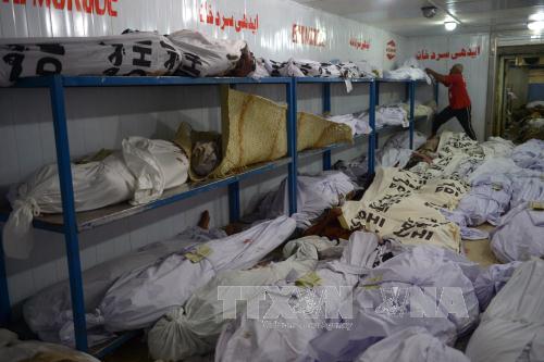Thi thể các nạn nhân thiệt mạng do nắng nóng tại đền Edhi ở thành phố Karachi ngày 23/6. Ảnh: AFP/TTXVN
