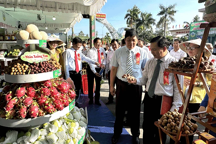 Lãnh đạo tỉnh Sóc Trăng thăm các gian hàng đạt chuẩn OCOP trưng bày tại buổi lễ.