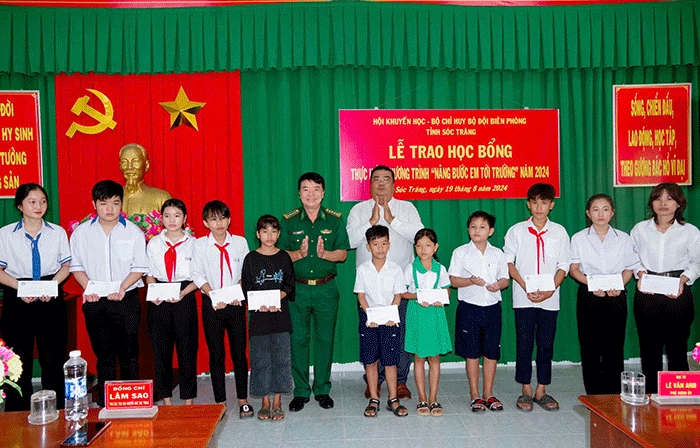 BĐBP tỉnh Sóc Trăng trao học bổng cho học sinh có hoàn cảnh đặc biệt khó khăn vươn lên trong học tập ở khu vực biên giới biển.