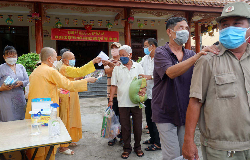 Sư cô, phật tử tịnh xá Ngọc An (phường 2, TP.Tân An) tặng quà cho người khiếm thị