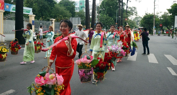 | Các hoạt động diễu hành trên đường phố tái hiện Lễ hội Nguyên tiêu tại TP Hồ Chí Minh. (Ảnh: Thu Trang) |