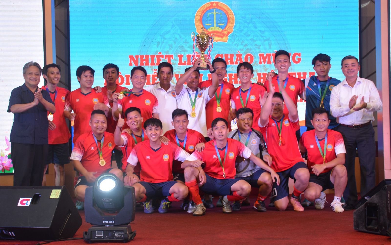 Ban Tổ chức trao giải nhất bóng đá cho đội bóng TAND tỉnh Tiền Giang