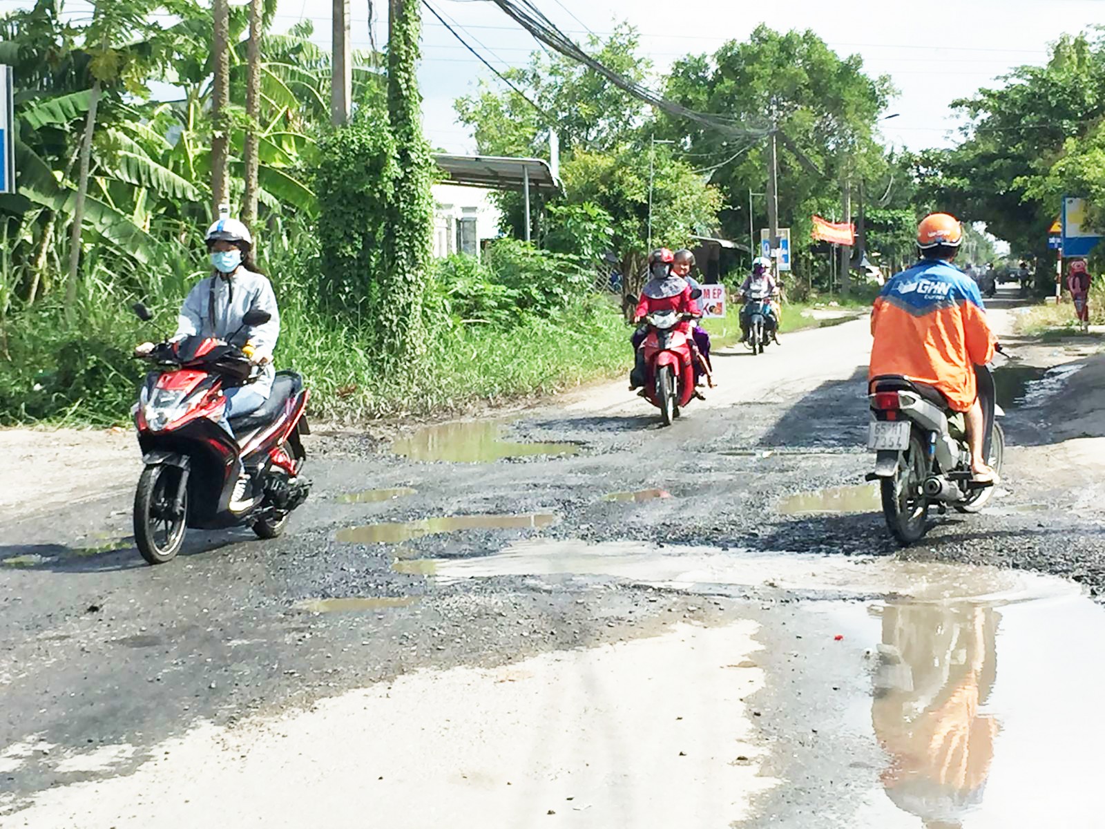 Đường tỉnh 923, đoạn đường thuộc phường Phước Thới nhiều đoạn xuống cấp nặng, ảnh hưởng đến việc đi lại của các phương tiện tham gia giao thông.