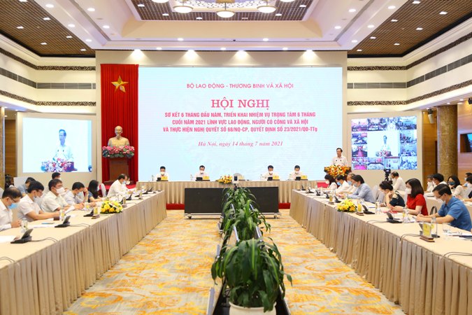Đây là chỉ đạo của Bộ trưởng Bộ LĐ-TB&XH Đào Ngọc Dung tại hội nghị Hội nghị sơ kết 6 tháng đầu năm, triển khai nhiệm vụ trọng tâm 6 tháng cuối năm 2021 lĩnh vực lao động, người có công và xã hội và thực hiện Nghị quyết số 68/NQ-CP, Quyết định số 23/2021/QĐ-TTg sáng 14/7. Hội nghị được tổ chức theo hình thức trực tuyến.