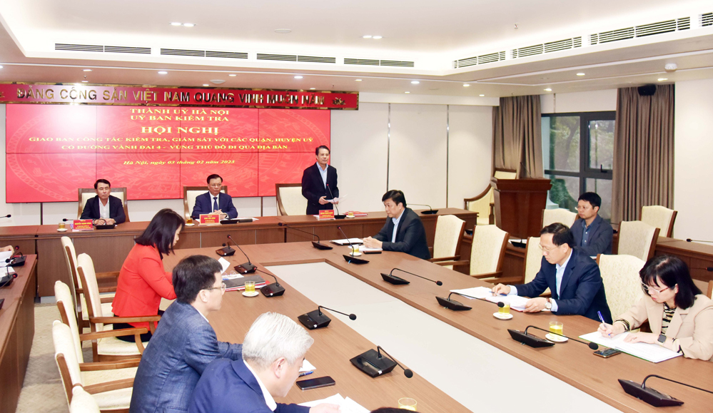 Báo cáo đánh giá chung tại hội nghị, Phó Chủ nhiệm Thường trực Ủy ban Kiểm tra (UBKT) Thành ủy Hà Nội Nguyễn Chí Lực cho biết, thực hiện chỉ đạo của Thường trực, Ban Thường vụ Thành ủy Hà Nội và hướng dẫn của UBKT Thành ủy, các quận, huyện ủy đã chỉ đạo UBKT cấp ủy vào cuộc kiểm tra, giám sát trách nhiệm cán bộ liên quan đến việc triển khai dự án Vành đai 4; đồng thời phân công cán bộ phụ trách địa bàn theo sát tình hình.
