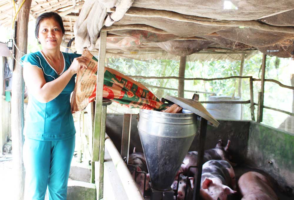 Nhờ đi học hỏi nhiều nơi, chị Nga đã đem về ấp Văn Phòng “máng ăn tự động”, giúp giảm rất nhiều công sức cho người nuôi heo tại địa phương
