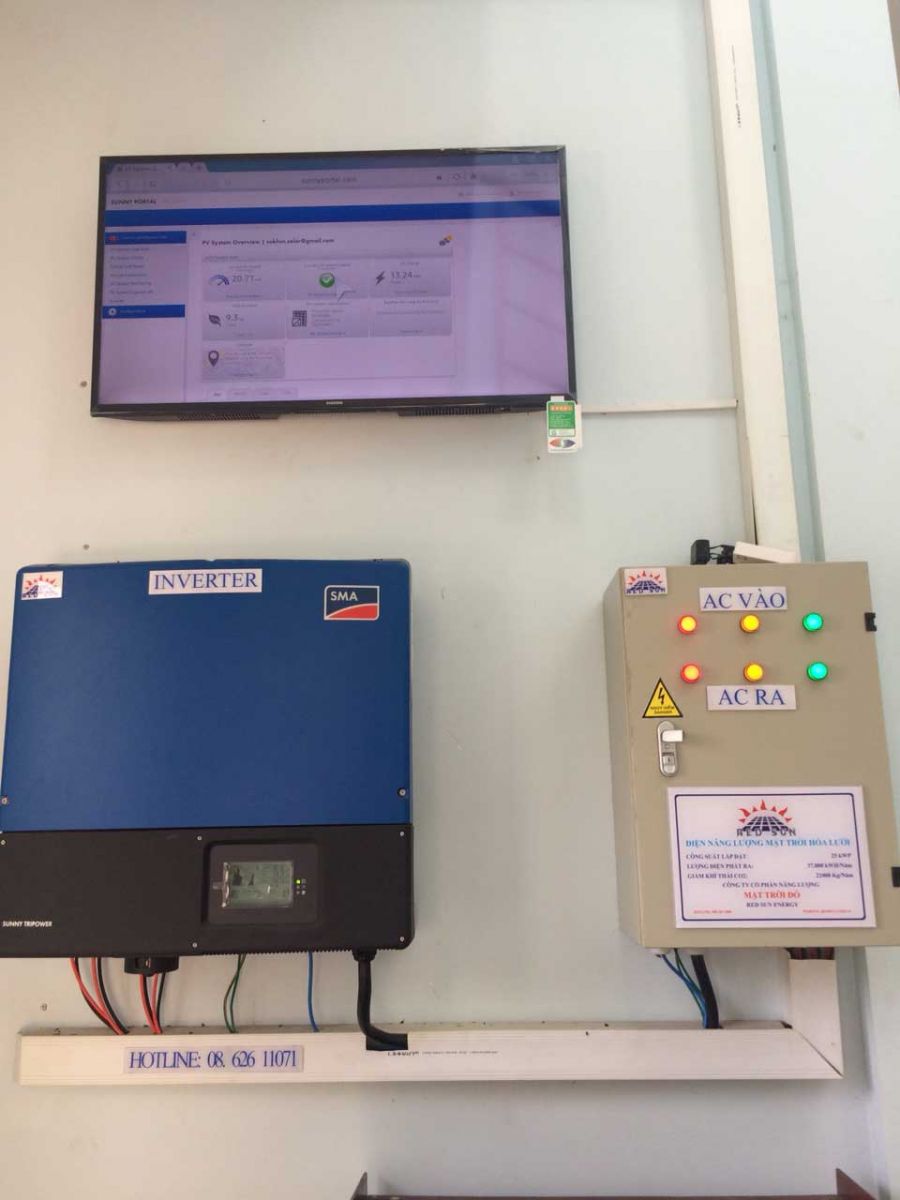 Cty TNHH Năng lượng Mặt trời Đỏ Long An là doanh nghiệp tiên phong và có những đóng góp hiệu quả vào ngành năng lượng mặt trời. Cty vừa tích cực tham gia sản xuất, vừa nghiên cứu, tìm tòi các công nghệ mới nhằm nâng cao năng suất, chất lượng và hạ giá thành sản phẩm. Hiện, Cty có khoảng 30% sản phẩm tấm pin năng lượng mặt trời được tiêu thụ trong nước (chủ yếu các khu vực vùng sâu, vùng xa, hải đảo và những nơi chưa có điện lưới quốc gia); 70% xuất khẩu sang các nước: Mỹ, Pháp và khu vực ASEAN. Mô hình hoạt động theo nguyên lý hòa lưới, năng lượng điện thu được từ các tấm thu biến đổi trực tiếp thành nguồn AC, được điều khiển tự động hòa vào hệ thống mạng lưới điện hiện hữu thông qua một thiết bị chuyên dụng hòa lưới. Khi bị mất điện lưới, hệ thống tự động ngắt nhằm bảo đảm an toàn. Hòa lưới sử dụng kết hợp giữa điện lưới và điện mặt trời, khi điện mặt trời không đủ cung cấp thì hệ thống sẽ nhận bổ sung từ điện lưới. Trường hợp lượng điện sinh ra từ hệ thống điện mặt trời dư thừa sau khi cung cấp cho tải sẽ trả ngược ra điện lưới, có thể lắp công tơ đo đếm giao nhận 2 chiều để quan sát hoạt động của hệ thống.