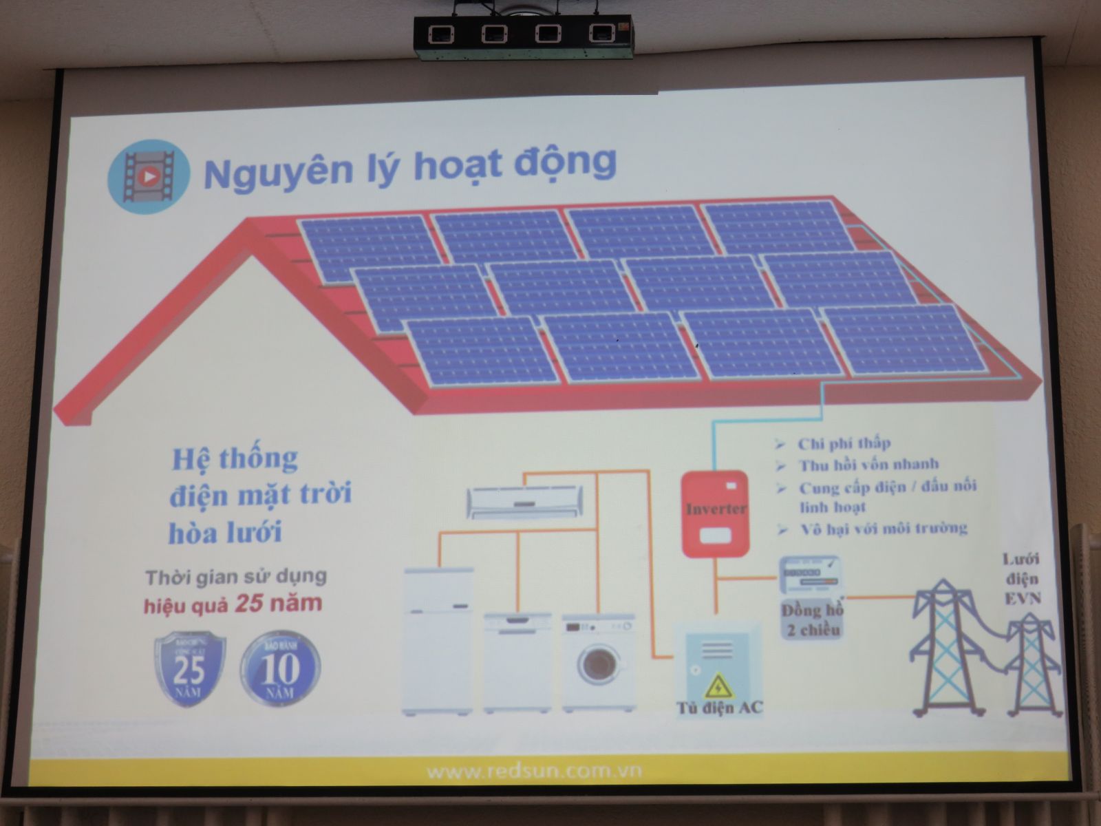 Tham gia hội thảo, đại biểu được tìm hiểu các vấn đề: Tiềm năng phát triển và ứng dụng năng lượng mặt trời trên địa bàn tỉnh; năng lượng mặt trời, xu hướng thế giới và tiềm năng của Long An; điện mặt trời mái nhà - giải pháp xanh, sạch, tiết kiệm điện cho DN; ứng dụng điện mặt trời trong nông nghiệp;…