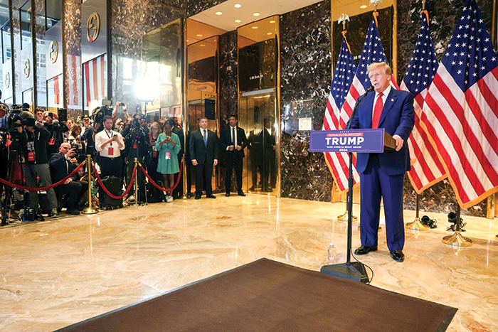 Cựu Tổng thống Donald Trump tại cuộc họp báo ngày 31-5, sau phán quyết của tòa án New York. Ảnh: Getty Images