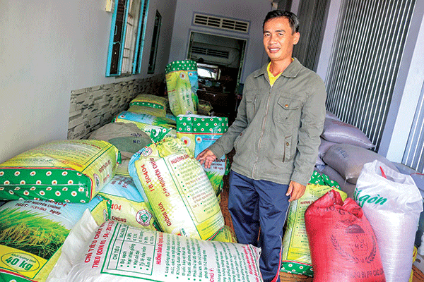 Nông dân chọn mua lúa giống tại một cơ sở kinh doanh lúa giống ở huyện Thới Lai, TP Cần Thơ.