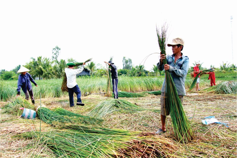 Nhân dân xã Đức Mỹ, huyện Càng Long thu hoạch lác.