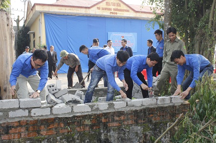| Đoàn viên, thanh niên thành phố Ninh Bình xây tường rào bao quanh nhà văn hóa phố Nam Phong, phường Ninh Phong. Ảnh: Mạnh Tuấn |
