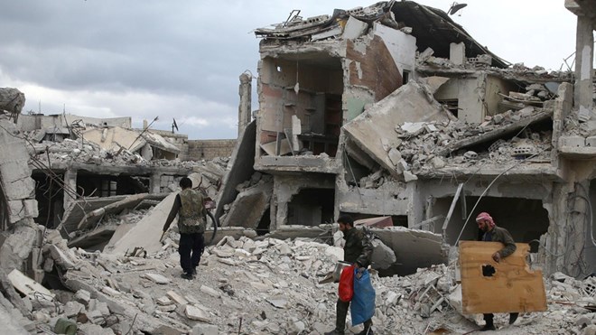 Cảnh đổ nát tại Douma, Đông Ghouta. (Nguồn: Reuters)