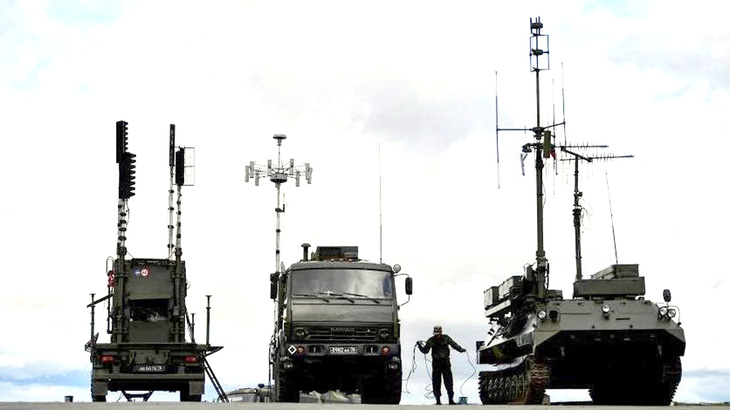 Không chỉ vậy Nga hiện đang triển khai các hệ thống Krasukha-2 và 4, Moskva-1, Leer-3, RP-377L/LA Lorandit và Pole cùng nhiều hệ thống khác nhằm mục tiêu áp chế điện tử các mạng di động nhằm cắt liên lạc giữa nhóm máy bay không người lái (UAV) với người điều khiển.