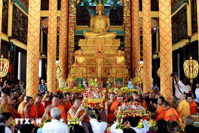 Quang cảnh Đại lễ dâng y Kathina tại chính điện (Ảnh: Nguyễn Dân/TTXVN)