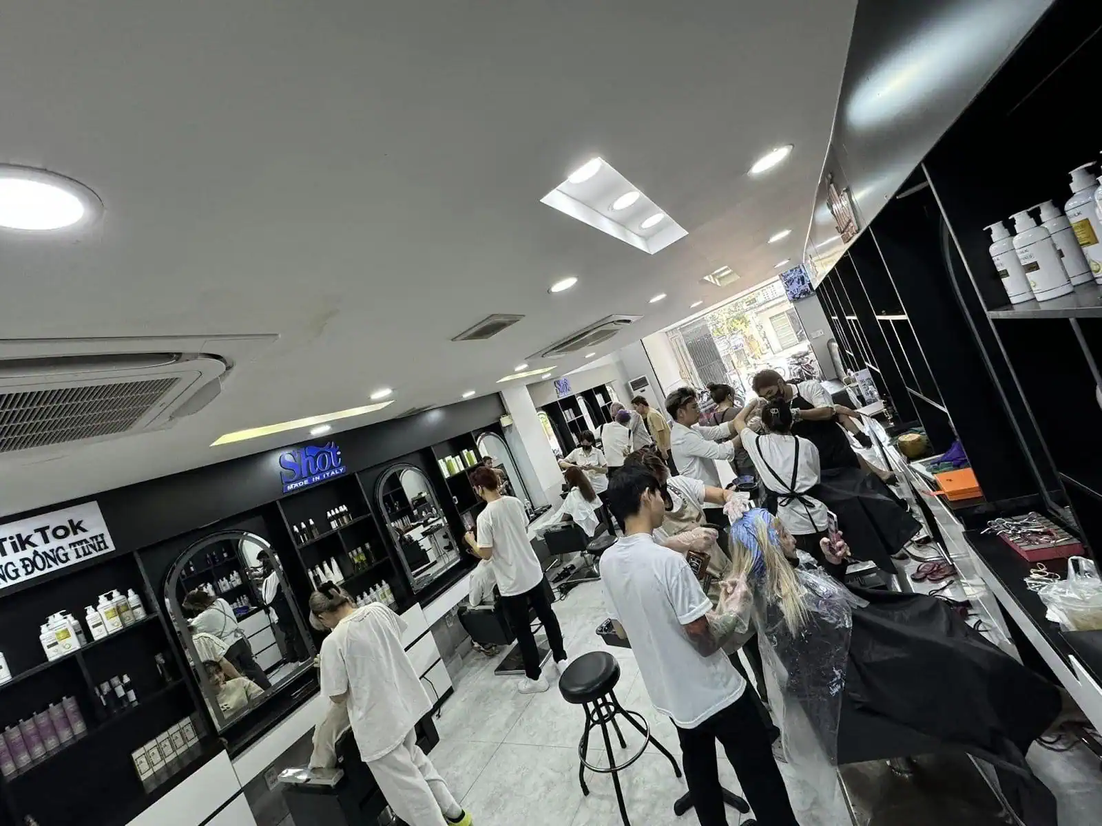 - Salon rộng rãi: Salon có không gian lớn, diện tích rộng, máy lạnh lắp đặt bao quanh.