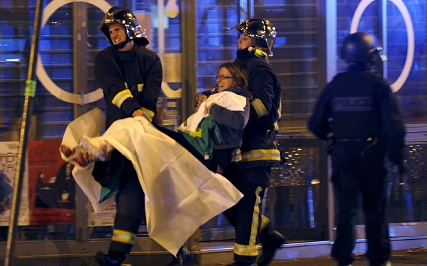 Người bị thương trong nhà hát Bataclan được nhanh chóng chuyển khỏi hiện trường.