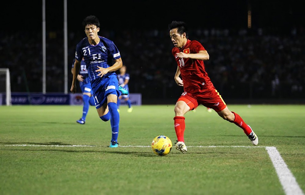 Takehiro Tomiyasu (trái) trong lần sang thi đấu giao hữu với tuyển Việt Nam trên sân Cần Thơ. Ảnh: NGUYỄN MINH