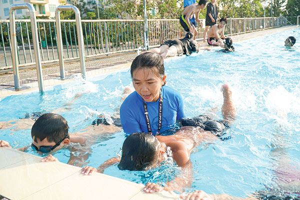 Cô Ðỗ Thị Ngọc Quý hướng dẫn học sinh tập bơi.
