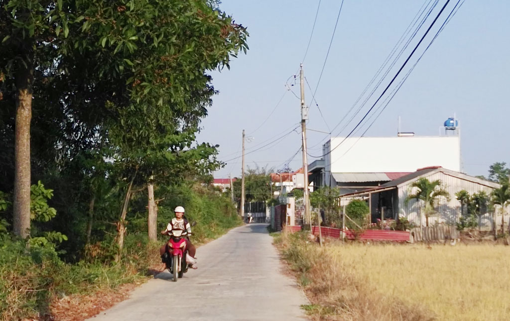 Những tuyến đường trục ấp được tráng bê tông sạch sẽ, tạo nên diện mạo mới cho nông thôn Tân Ân hôm nay