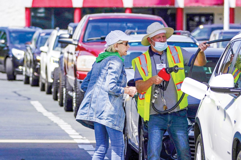 Hàng dài xe hơi nối đuôi chờ mua xăng ở bang Bắc Carolina, khi Colonial Pipeline bị tấn công mạng. Ảnh: AP