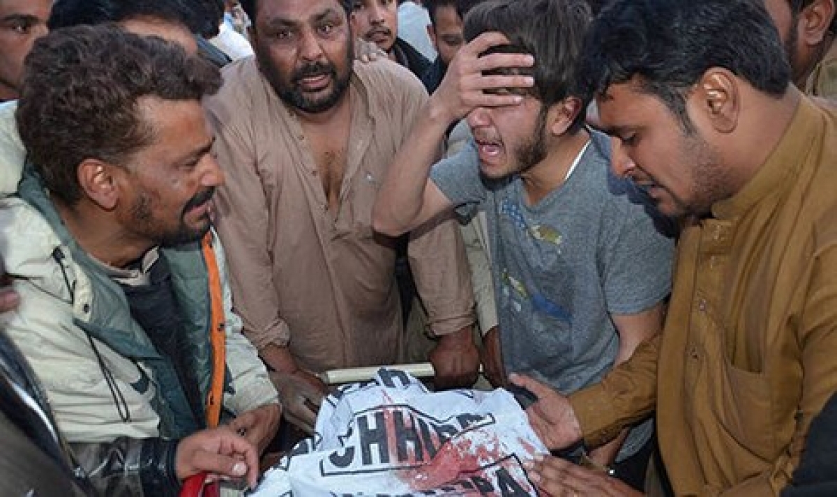 Thân nhân đau buồn trước cái chết của nạn nhân trong một vụ tấn công khủng bố tại Pakistan. Ảnh: Reuters