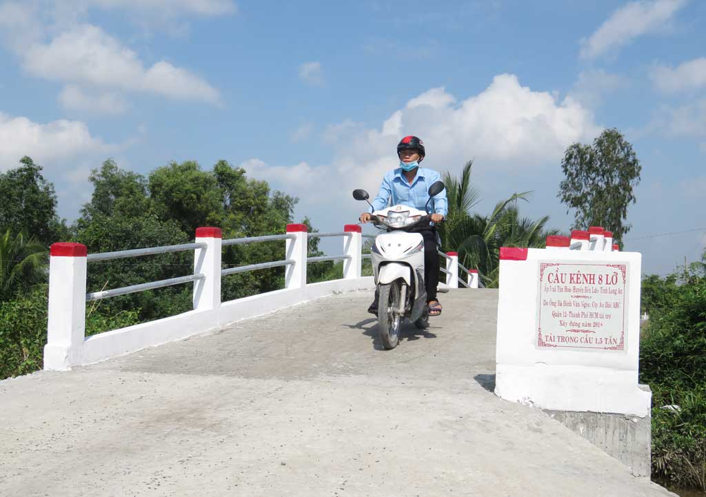 Nhà bà Đặng Thị So (ngụ ấp 5) nằm trên tuyến đường có nhiều cây cầu mới xây dựng thay thế cầu cũ hư hỏng, thô sơ. Bà So nói: “Tuổi cao, sức yếu, trước đây, mỗi lần đi chợ, tôi khá khó khăn khi di chuyển qua các cầu. Nay thì khác rồi, cầu mới xây dựng rộng rãi, vững chắc, xe Honda qua lại dễ dàng. Không chỉ riêng tôi, người dân nơi đây ai cũng vui mừng. Chắc chắn, đường sá thông thương, cây trái nông dân trồng cũng được mua bán dễ dàng hơn”.