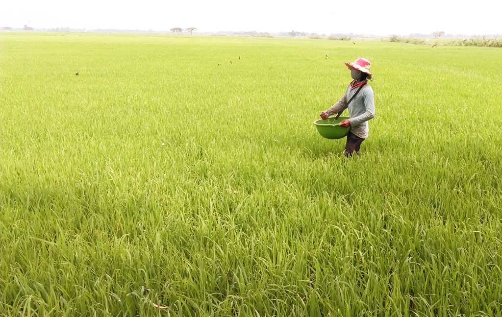 Nông dân Tân Hưng chăm sóc lúa